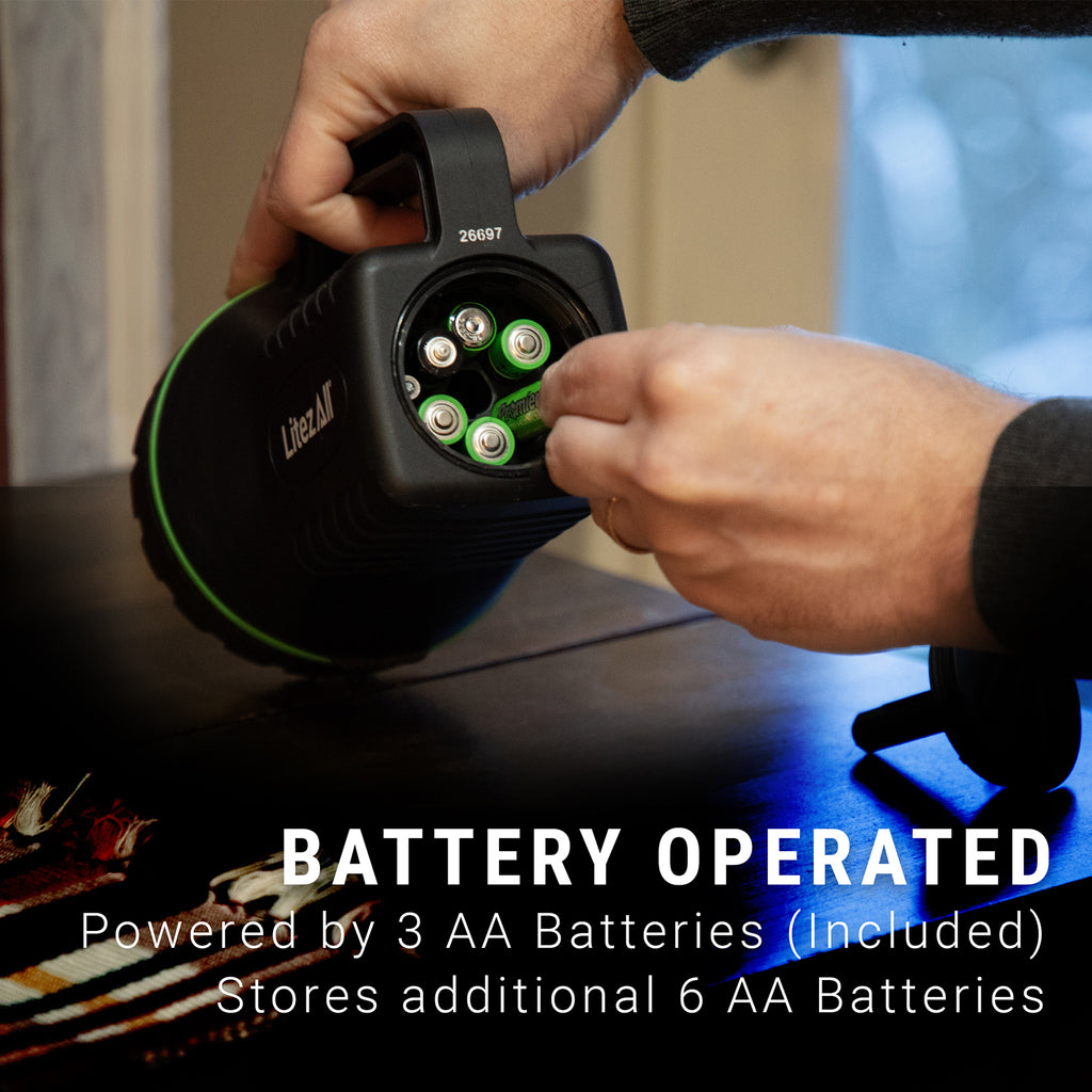 The top mounted handle is easy to hold and it's designed to look like the old style flashlights that used the big square 6 volt lantern batteries. This one is powered by 3 AA batteries and there's even built-in storage for up to 6 more AA batteries so you're always prepared.