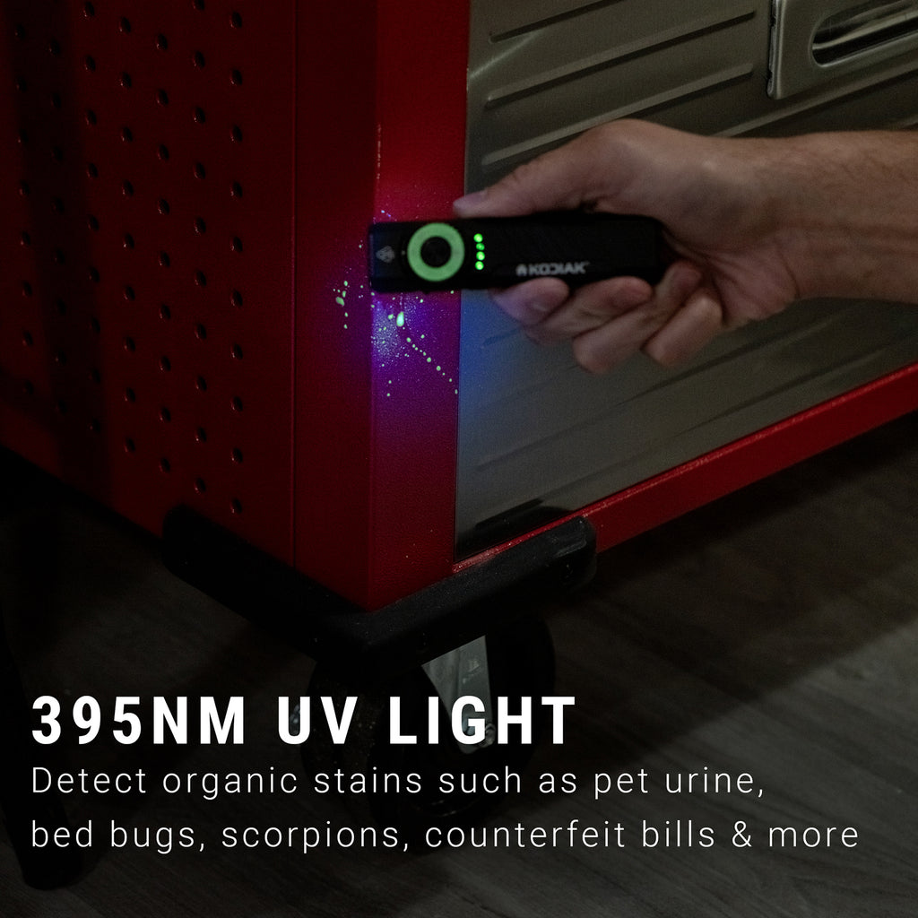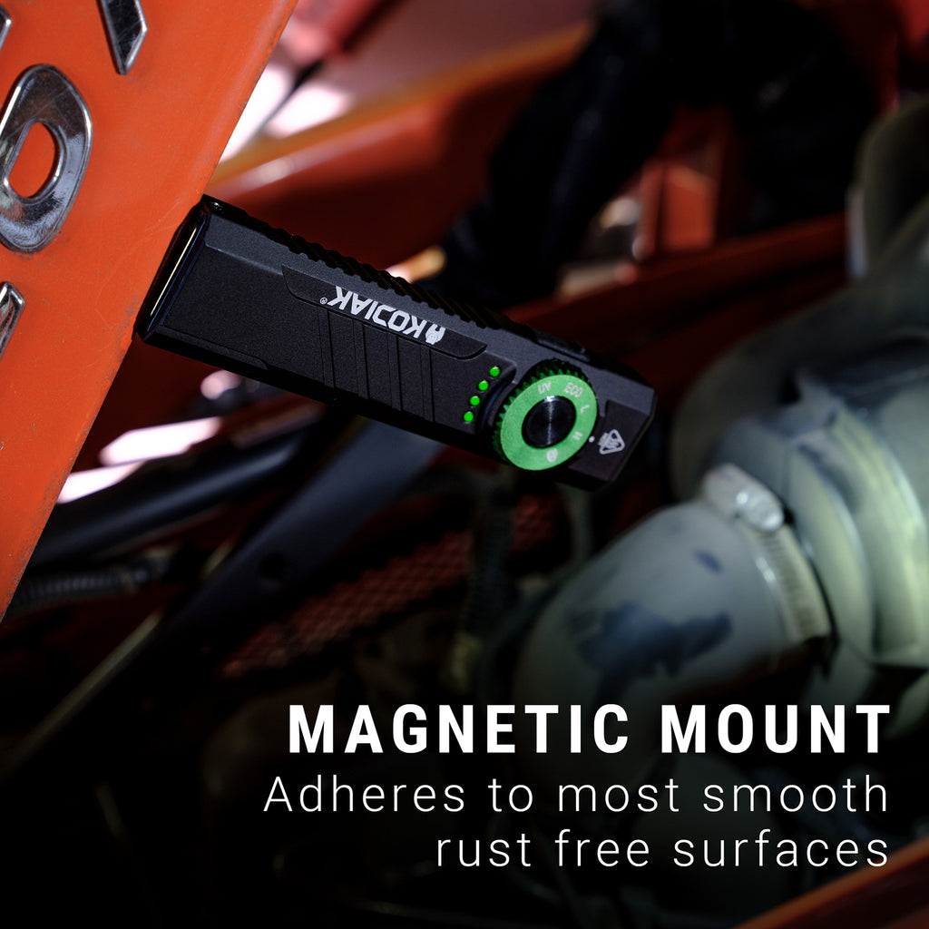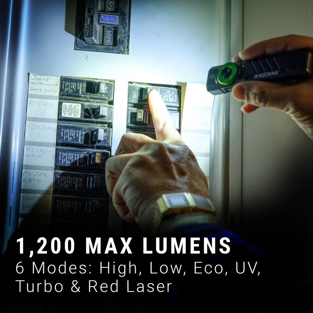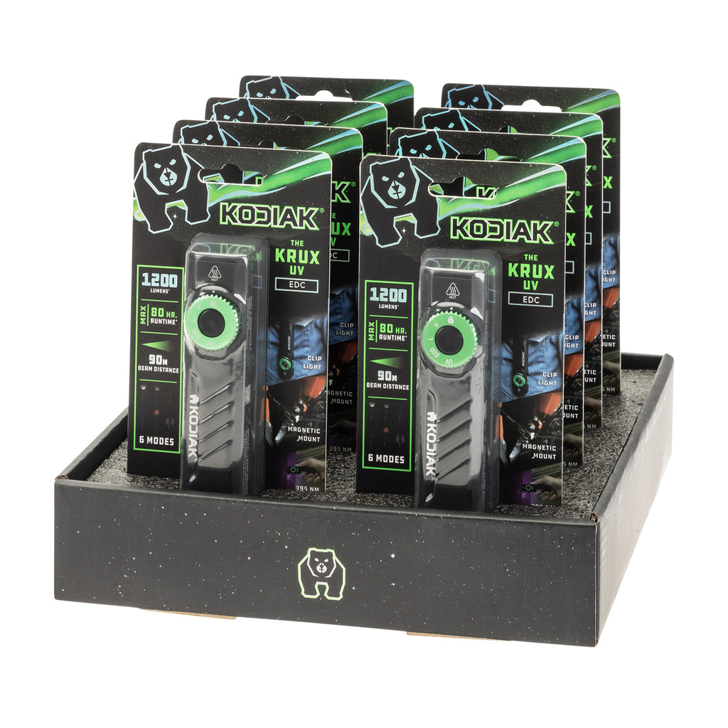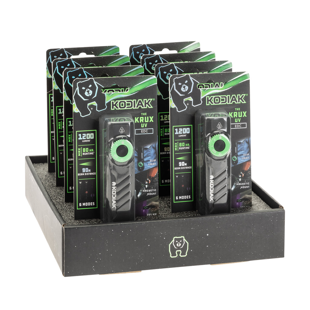 The Kodiak® Krux is a low profile rechargeable flashlight with a UV light and red laser pointer.