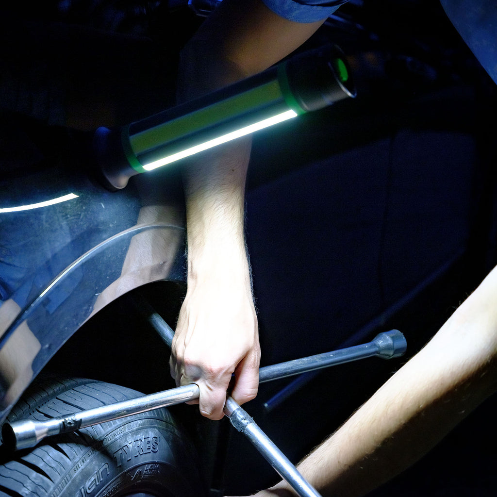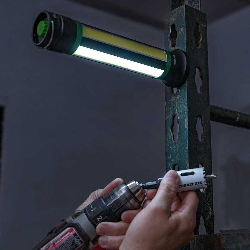 The Kuadrant offers flexible mounting options. Use the flip-up handle for carrying or hanging, or attach it to most smooth, rust-free metal surfaces using the powerful base magnet. Its multi-directional panel design makes it easy to aim light in nearly any direction for hands-free work.