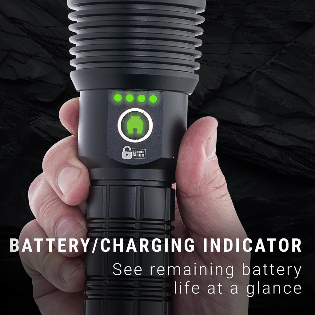 The Kodiak® Deny The Dark® Kolossus is an incredibly bright flashlight (15000 Max Lumens) thats built to perform under demanding conditions. The flashlight features a double-click manual lockout plus an automatic lockout (after 2 minutes of non-use) to prevent accidentally turning on.