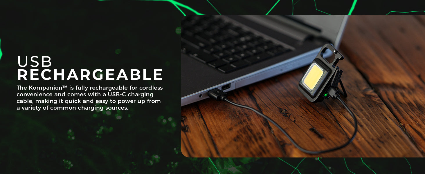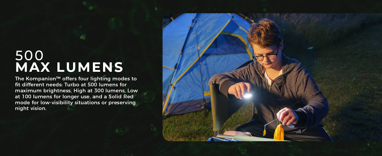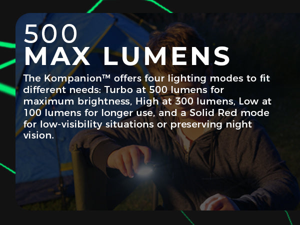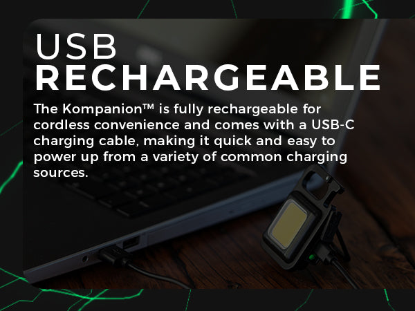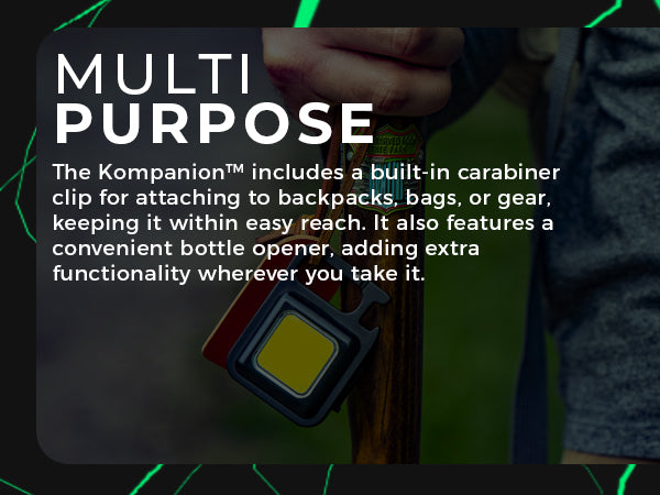 The KOMPANION is one of the smallest LED lights that that Litezall produces but boy, does it pack a punch! To call this product a flashlight does not do it justice - it is UNLIKE any other flashlight. The KOMPANION has so many features it's almost difficult to describe...but here I go. To start, the KOMPANION is NOT DESIGNED like a conventional hand-held flashlight. The KOMPANION is so small, it will fit in the palm of your hand, weighs around 45 grams and it produces 500 Lumens of light (high, low and strobe). Further, it features a standard camera tripod mount, a bottle opener, a carabiner (an excellent accessory for your key ring), a built-in kick stand, it's water resistant, it's USB-C rechargeable (yes!) and lastly but not least, it has a strong magnet on the back that attaches to any ferrous surface. Amazingly, all of this is attractively packaged into a 2 1/4" (6 centimeters) high by 1 3/4" (4 3/4 centimeters) wide, do everything light. A must buy!