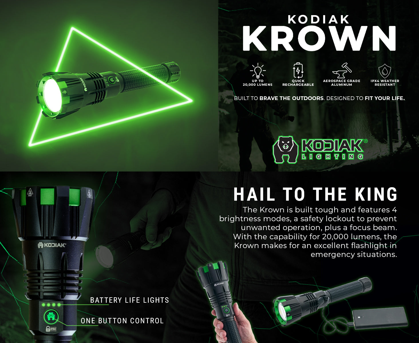 Product: Kodiak® Krown Rechargeable 20000 Lumen Tactical Flashlight with Power Bank