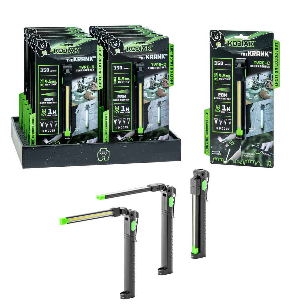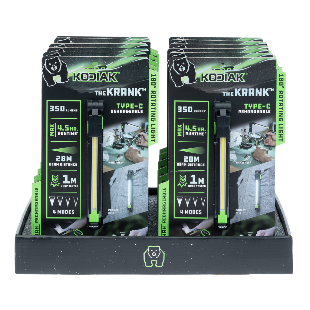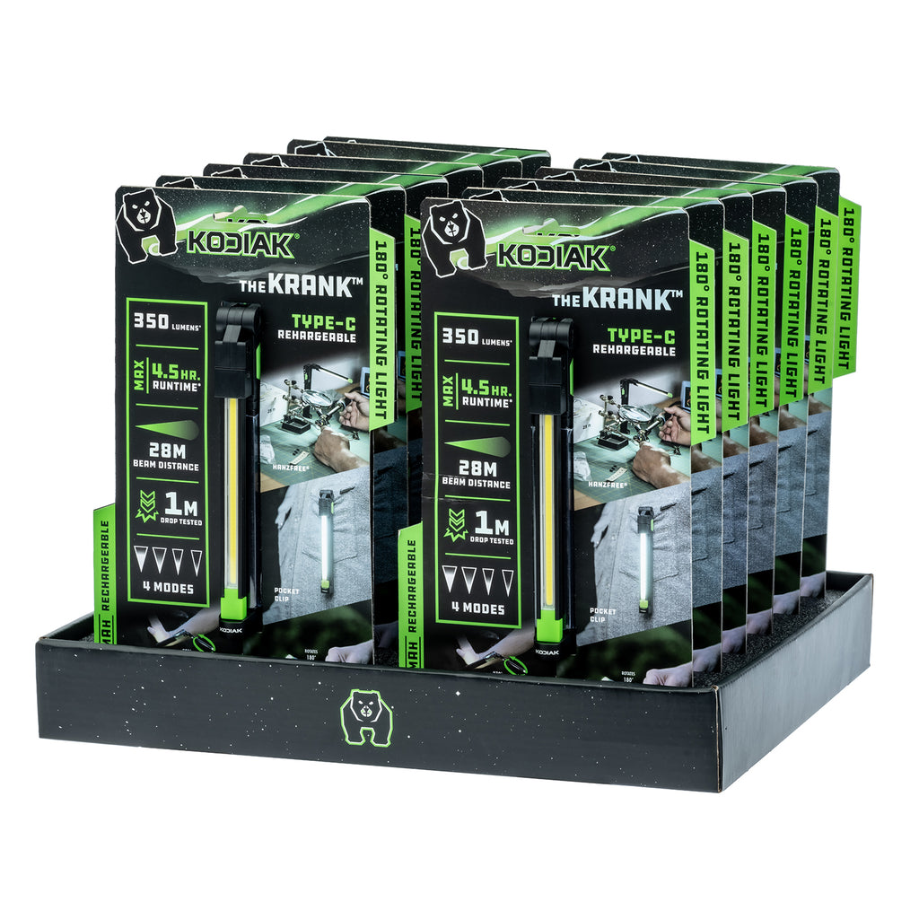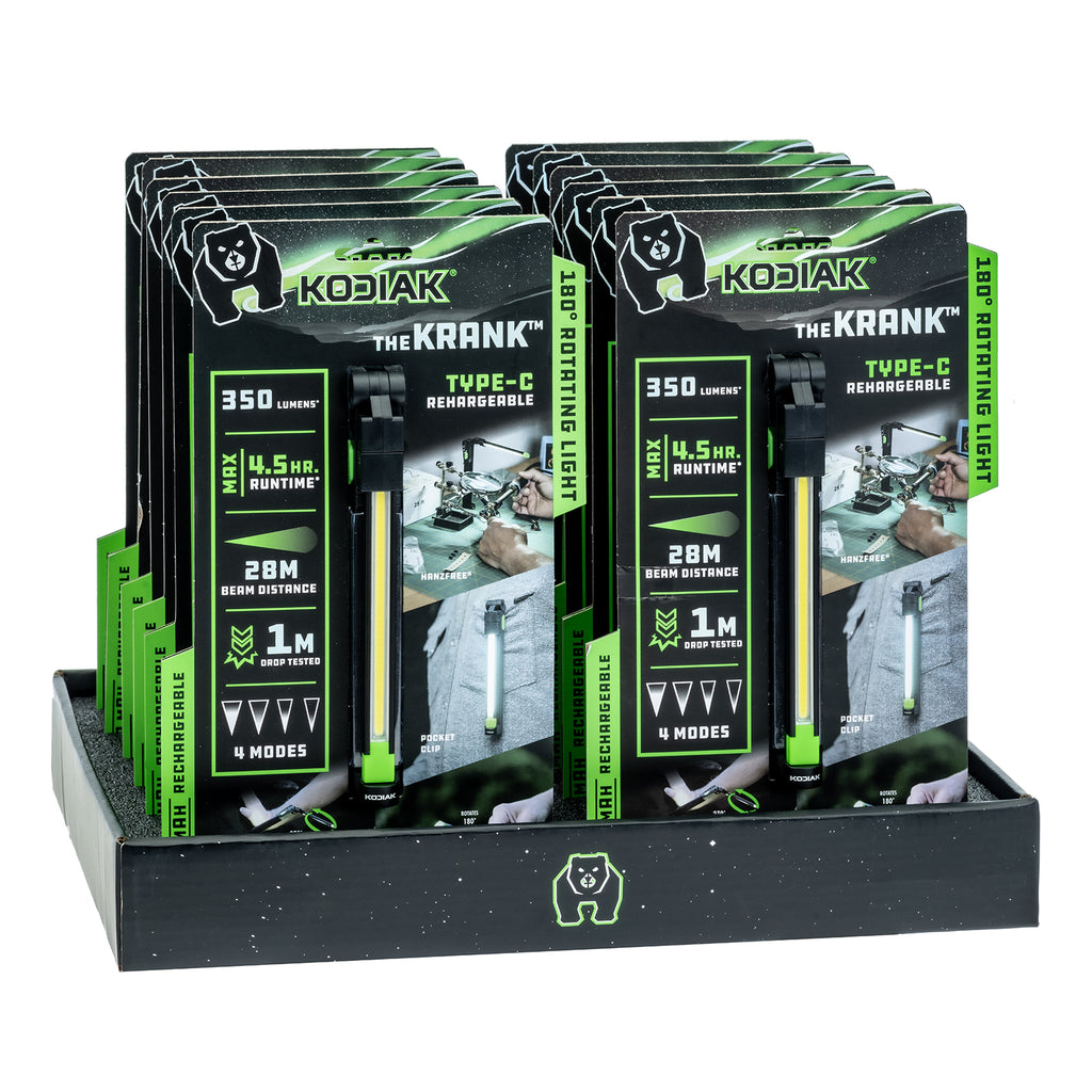 Meet the Kodiak® Krank, your go-to rechargeable work light for any task. Built tough with a 1M impact rating, this versatile light delivers powerful illumination wherever you need it — in the garage, workshop, or on the job site.