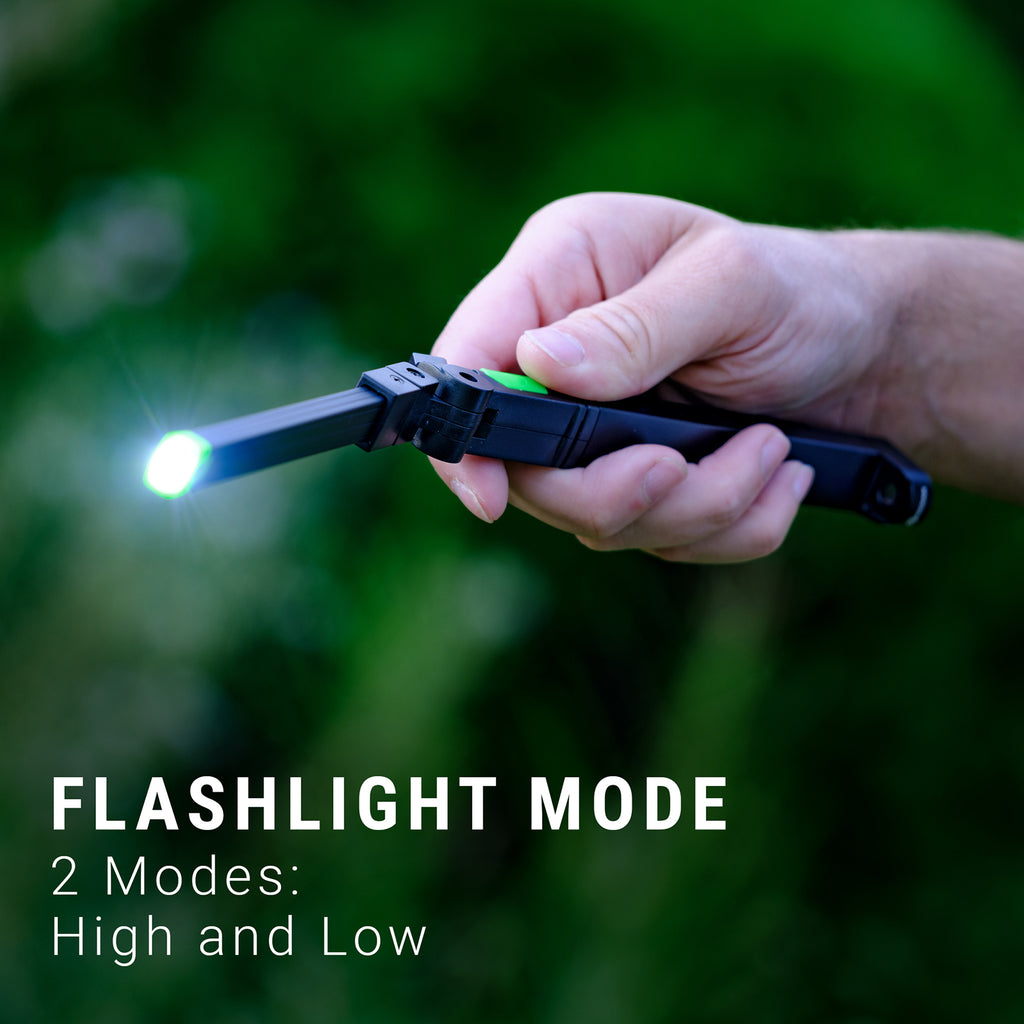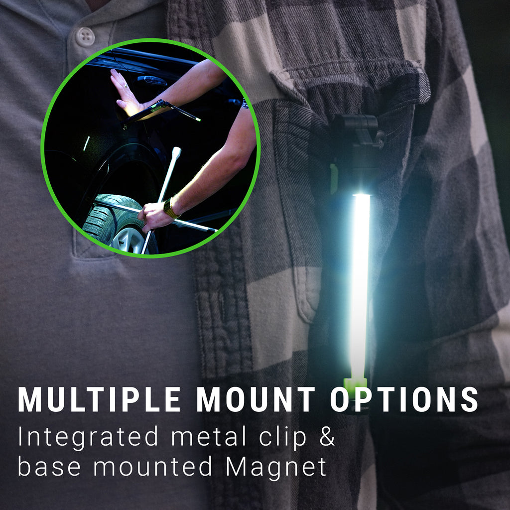 Featuring two flashlight modes and two work light modes, the Krank adapts to any situation. The light head flips up 180° and rotates 270°, giving you total control over light direction. Mount it your way with the strong metal clip for pockets or hanging, or use the base magnet to attach it securely to most smooth, rust-free metal surfaces.