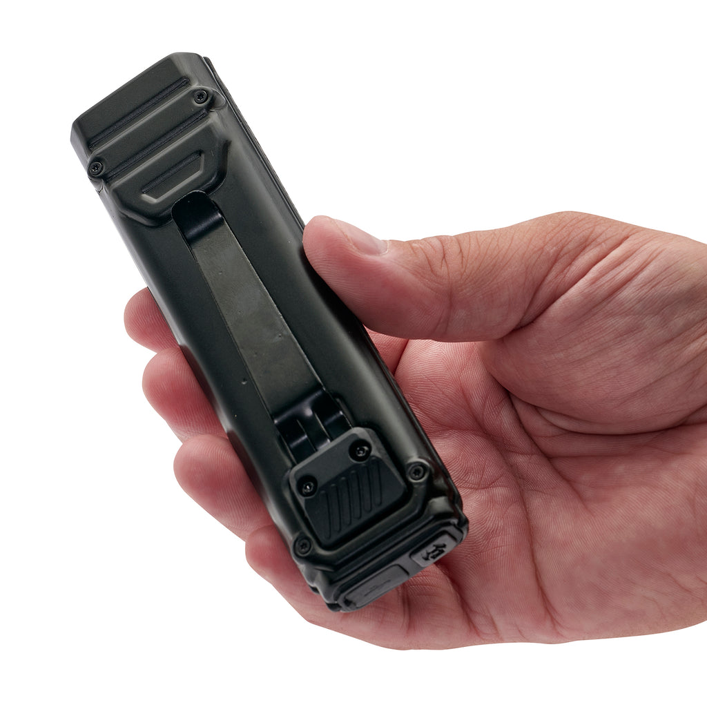 Built-in thermal protection automatically manages heat by entering a cooldown state if the light gets too warm, helping protect performance and internal components. A strong metal pocket clip on the base allows for secure carry or hands-free positioning when clipped to gear or clothing.