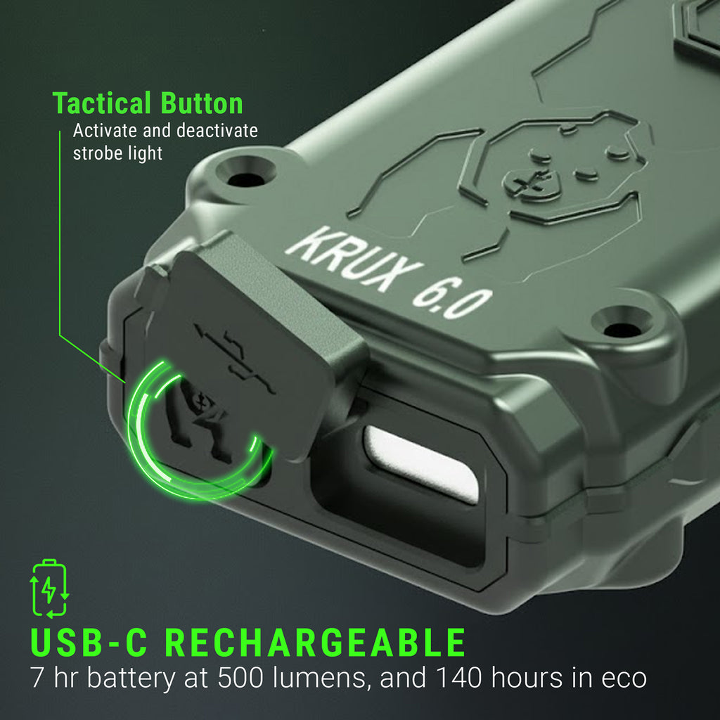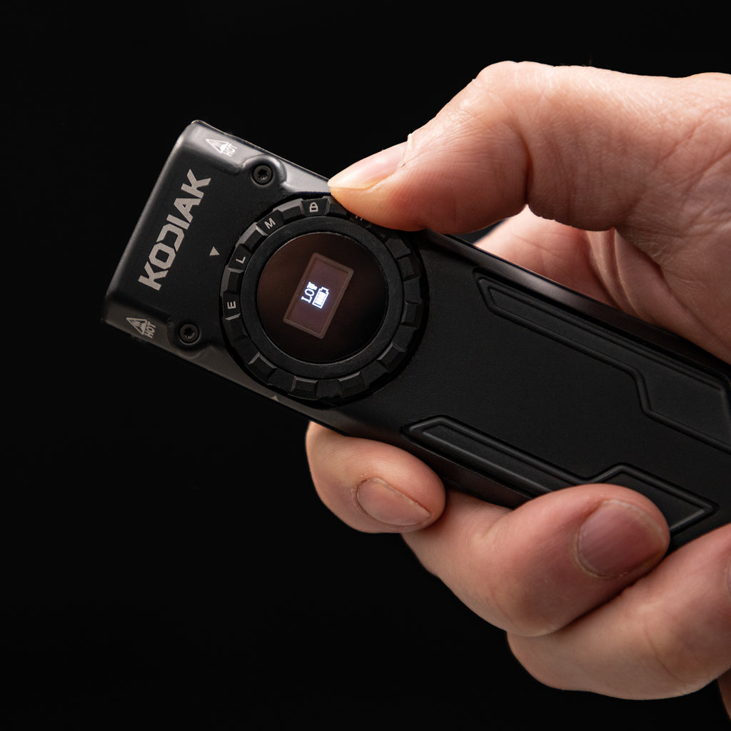The Kodiak® Deny The Dark® Krux 6.0 6000 Lumen Rechargeable Dial Work Light with OLED Screen is a compact, high-output work light built for demanding jobs, shop use, and everyday carry lighting. It combines powerful brightness with simple controls in a durable design that’s easy to keep close at hand.
