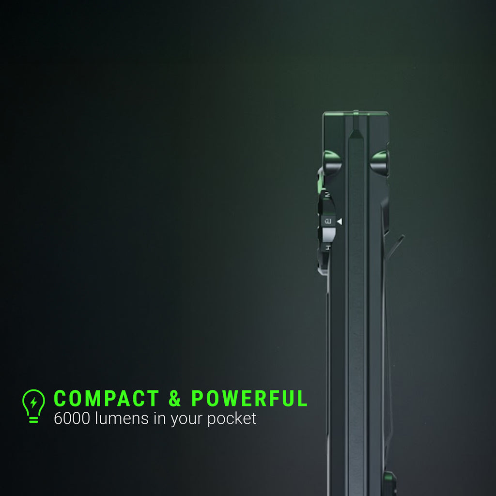 Turbo mode delivers up to 6000 lumens for short, high-intensity output, while high, medium, and low modes provide balanced brightness for longer tasks. Eco mode produces 5 lumens with an extended runtime of up to 140 hours. Light output and runtime scale efficiently across modes, with beam distances reaching up to 180 meters in turbo.