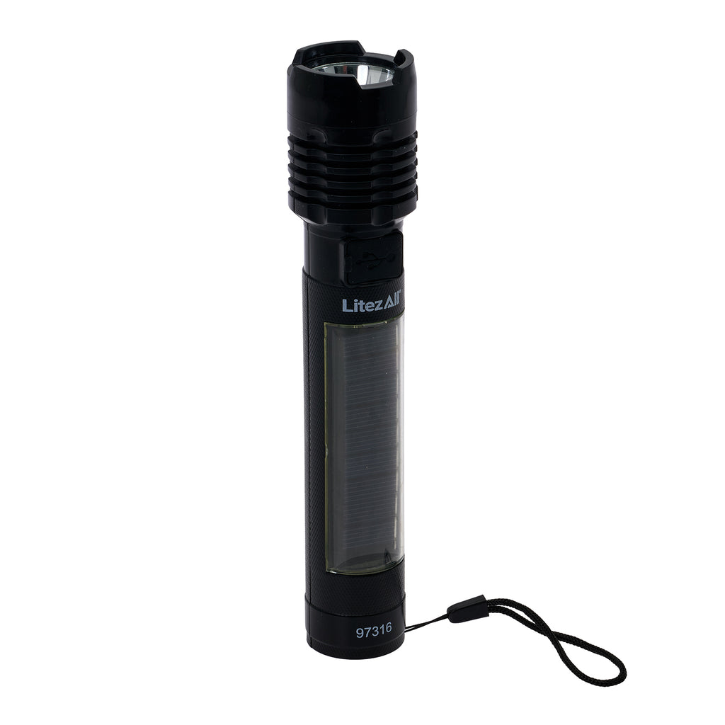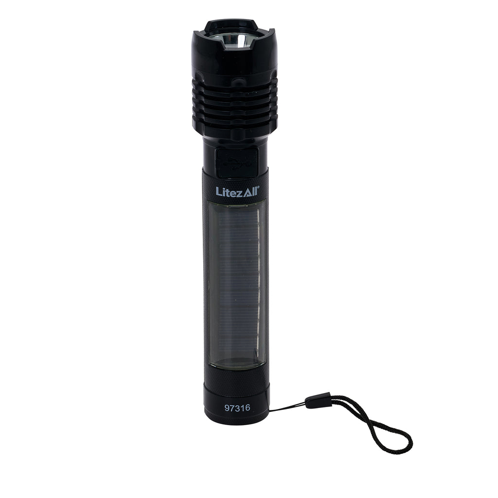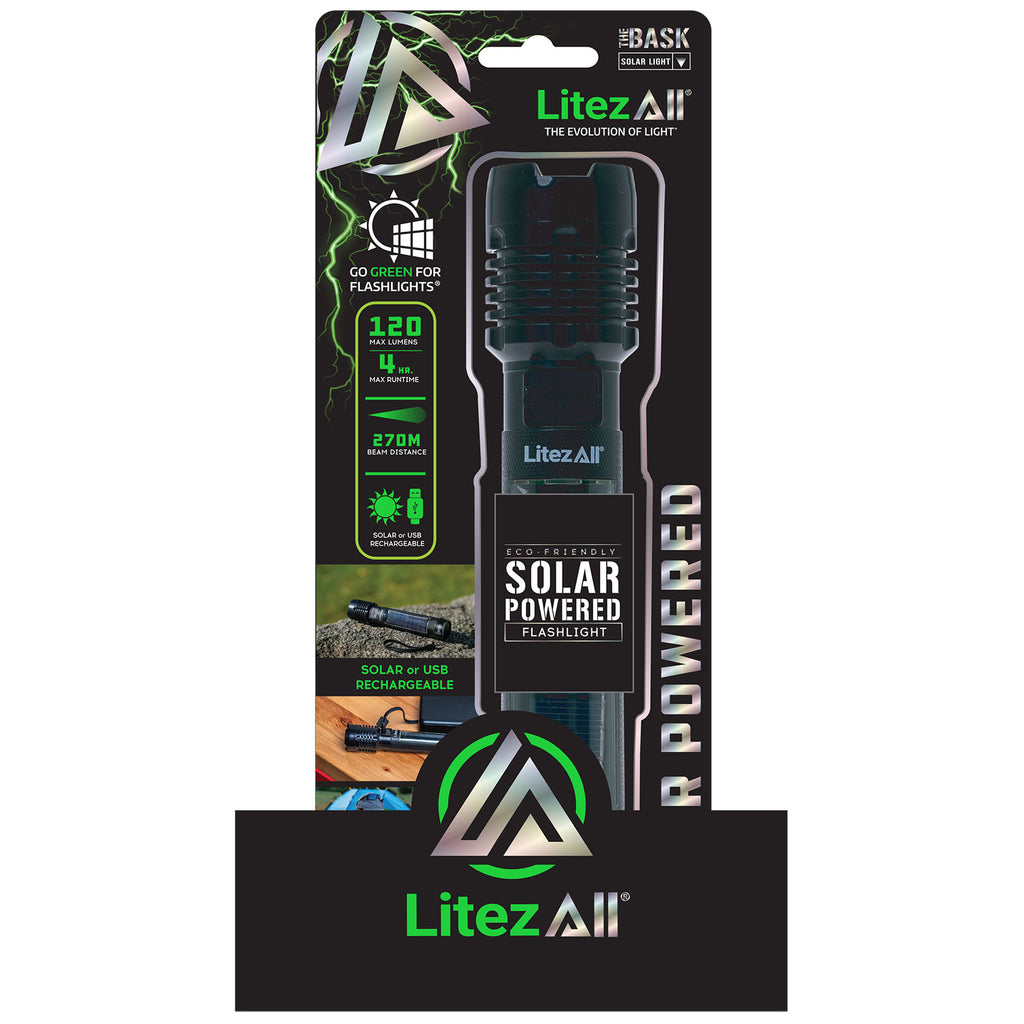 The LitezAll® The Evolution of Light® Bask Solar Powered & USB Rechargeable Flashlight provides dependable lighting whether you’re at home, on the road, or outdoors. Its dual-power design keeps you prepared, offering both solar charging for off-grid use and USB charging when a power source is available. It’s a practical choice for camping, travel, emergencies, and everyday tasks.
