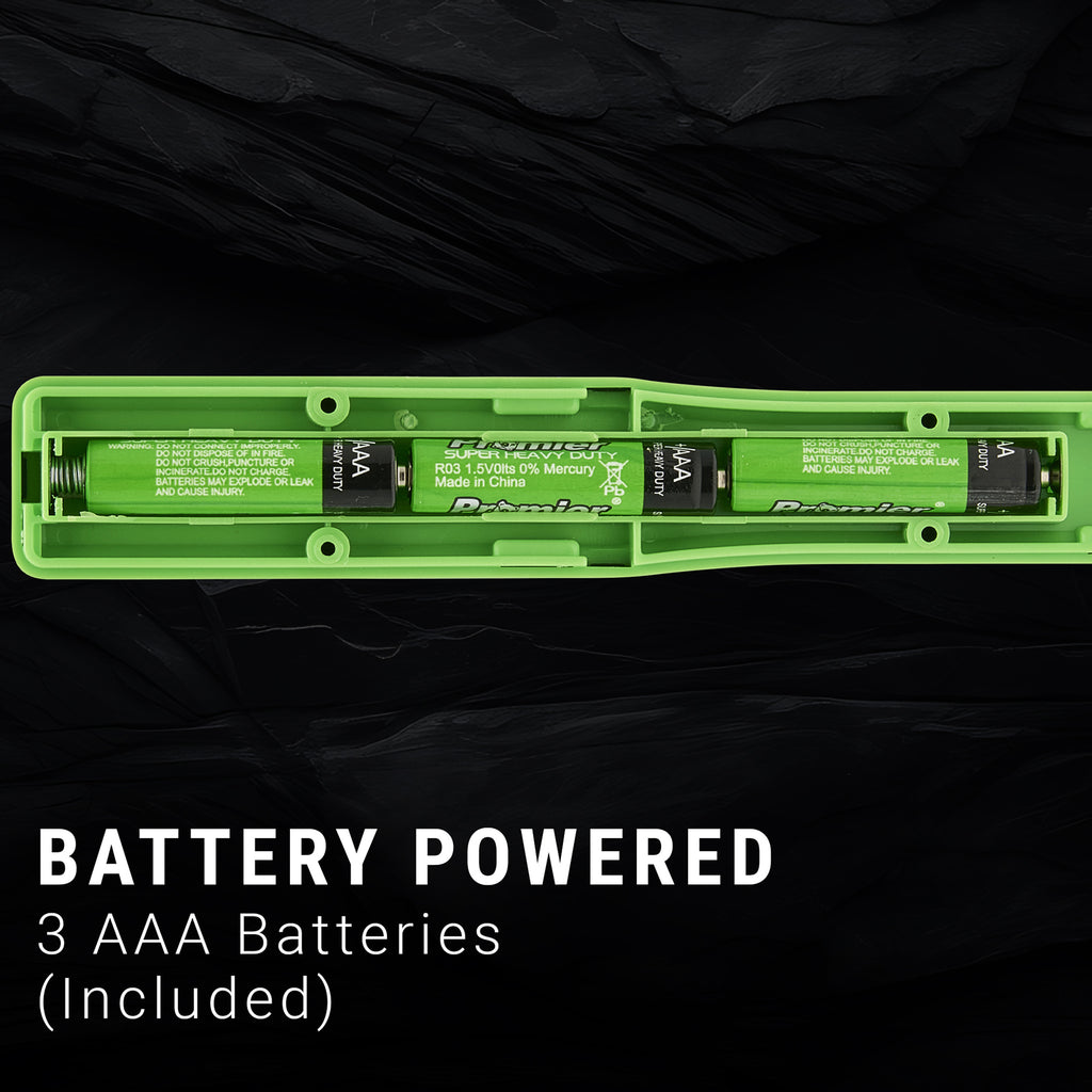 The Blip is powered by 3 AAA batteries (included) and measures 6.7""L x 1.1"W x 1.1"D