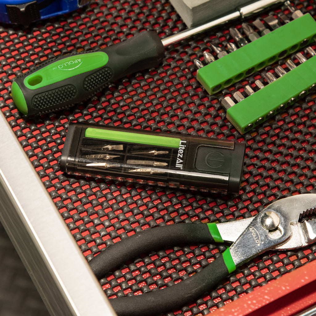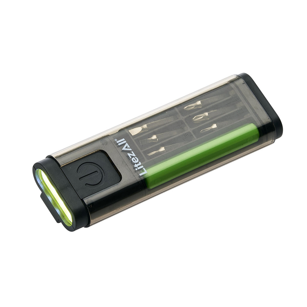 Two of the most used tools around the house are screwdrivers and flashlights. This set gives you both in a convenient and compact set. You're getting 6 driver bits that lock magnetically in the included handle. The handle and bits fit in a tray that easily slides in and out of the transparent case.