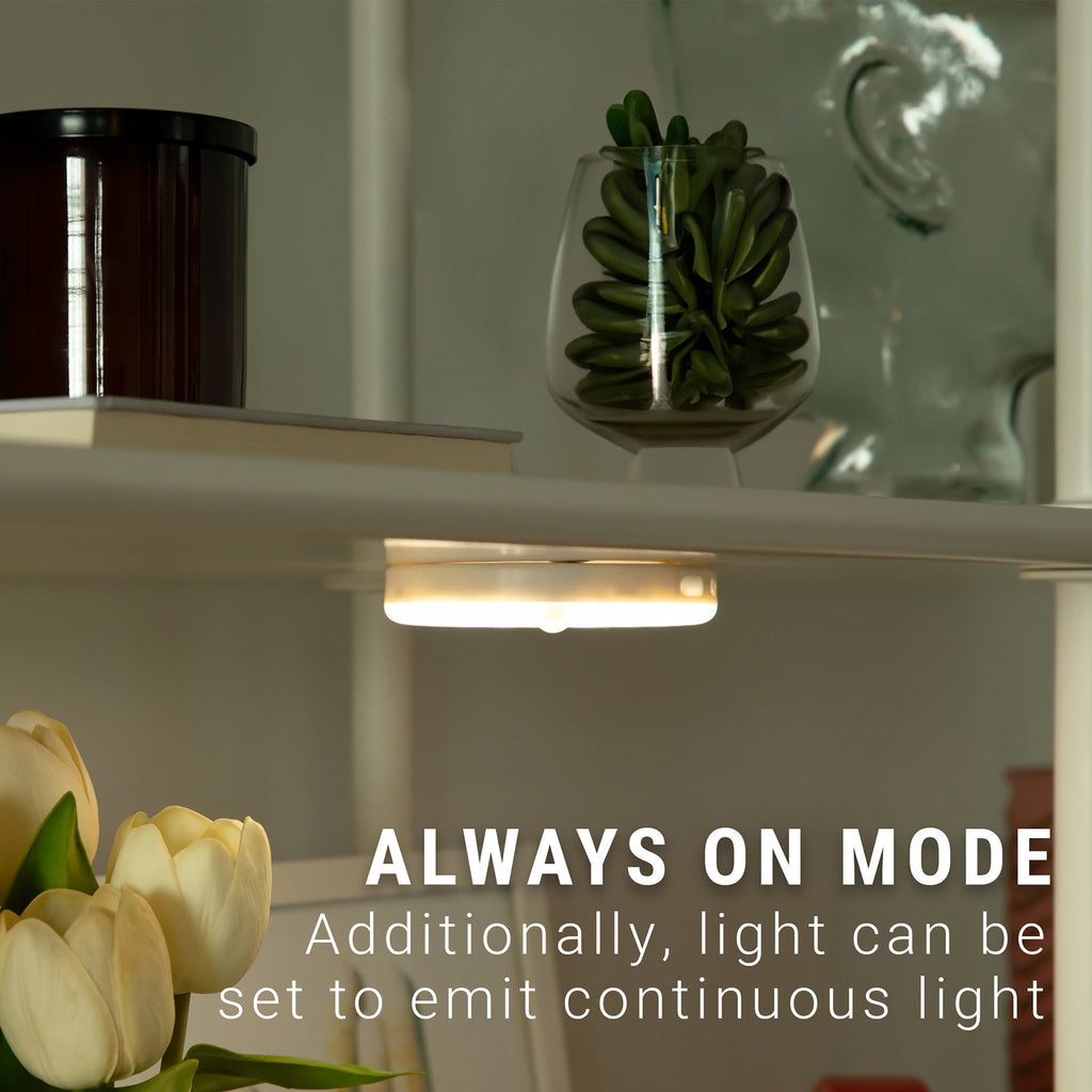 Installation is a breeze — no tools or wiring required. Simply charge it like your phone, then attach it magnetically or use the included peel-and-stick metal ring to mount it anywhere. The energy-efficient motion sensor activates in the dark, lighting up for about 30 seconds when movement is detected within 10–15 feet. Use it in always-on mode as a portable light or let it work hands-free in motion mode.