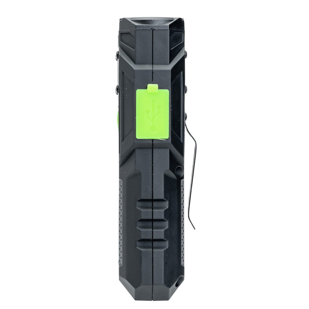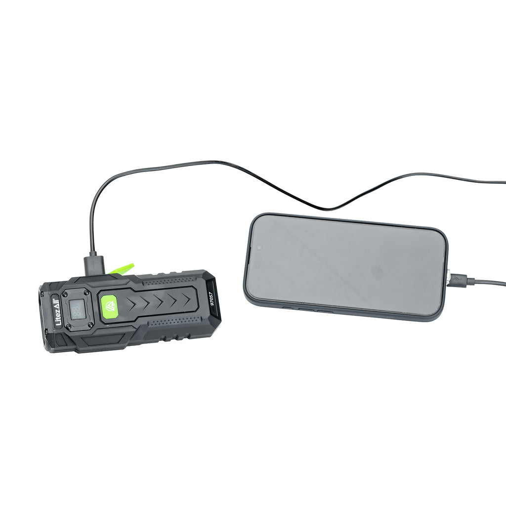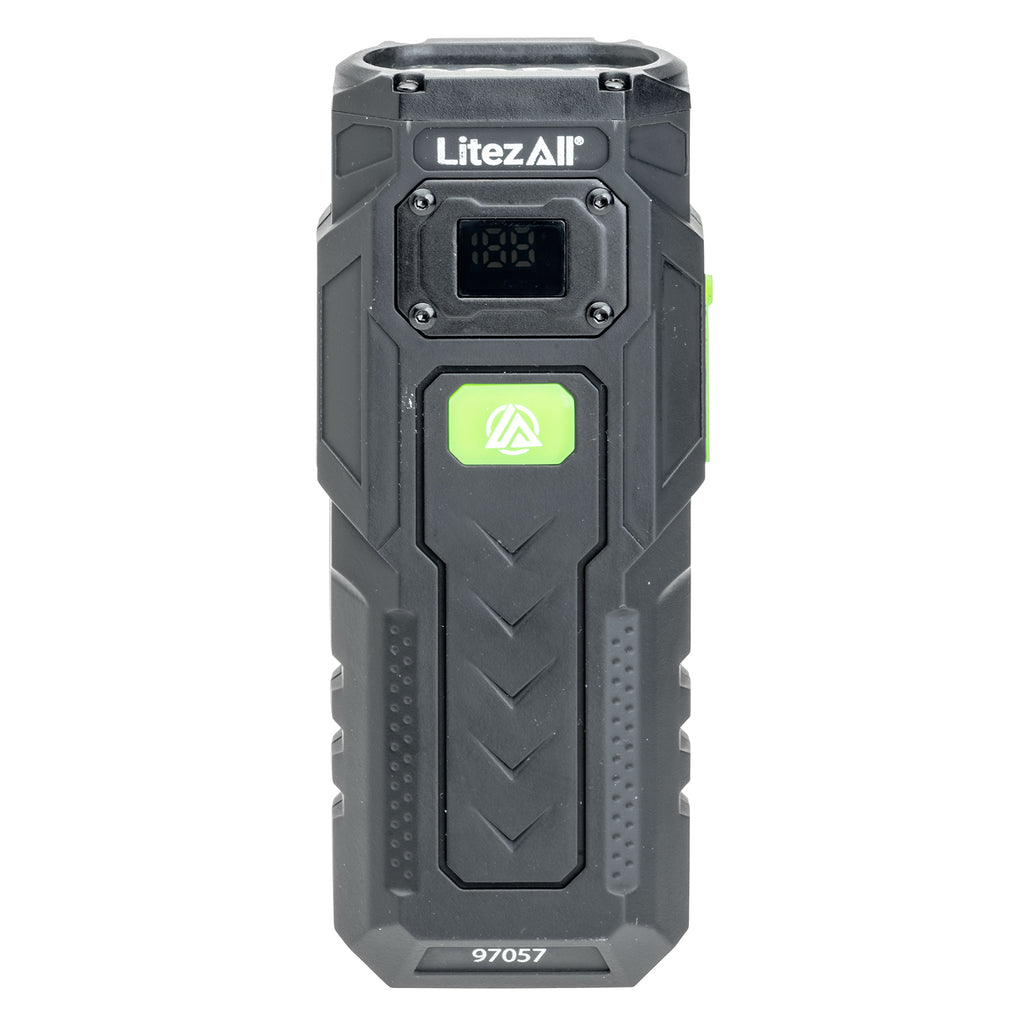 Stay prepared anywhere — the Litty® even charges your smart devices when you need extra power on the go. An integrated strong metal clip lets you secure or hang it easily, while a base-mounted magnet gives you hands-free lighting from any smooth, rust-free metal surface. Perfect for automotive repairs, camping, inspecting, hunting, or job site use.
