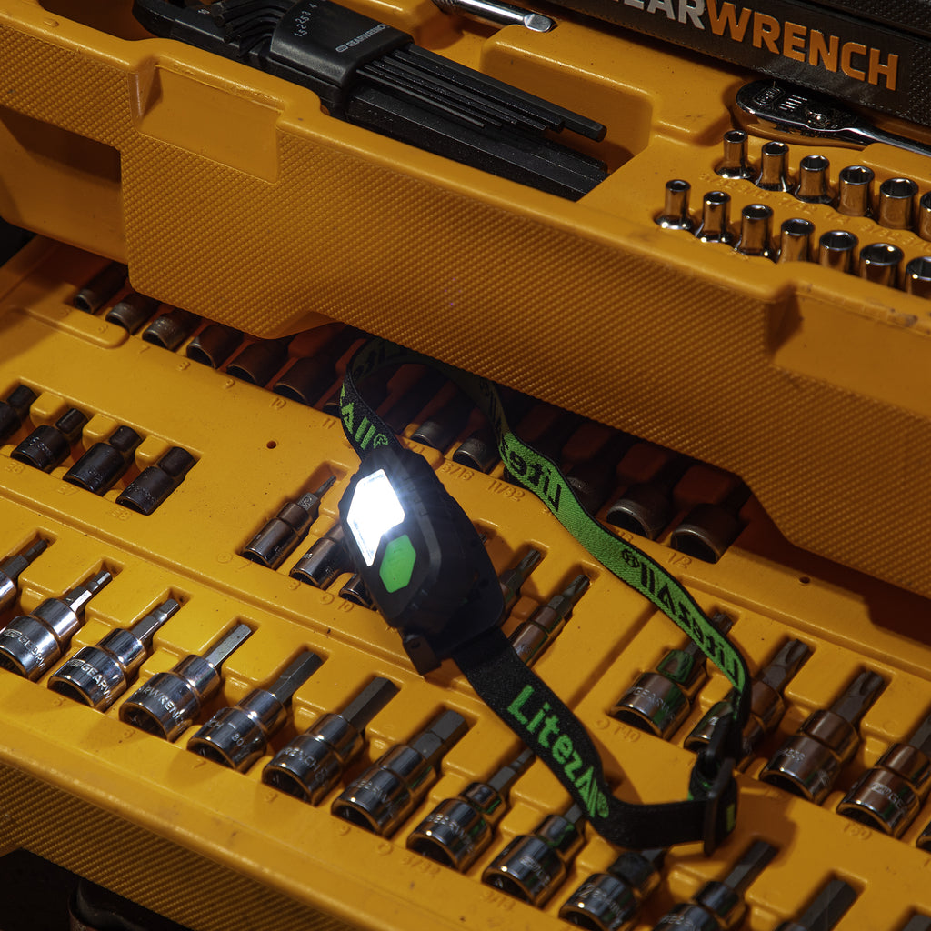The LitezAll®The Evolution of Light® Ultralite® headlamp is the perfect solution for home projects, hobbies, and crafts. It's comfortable to wear and fits most head sizes. Easy to operate with just one button.